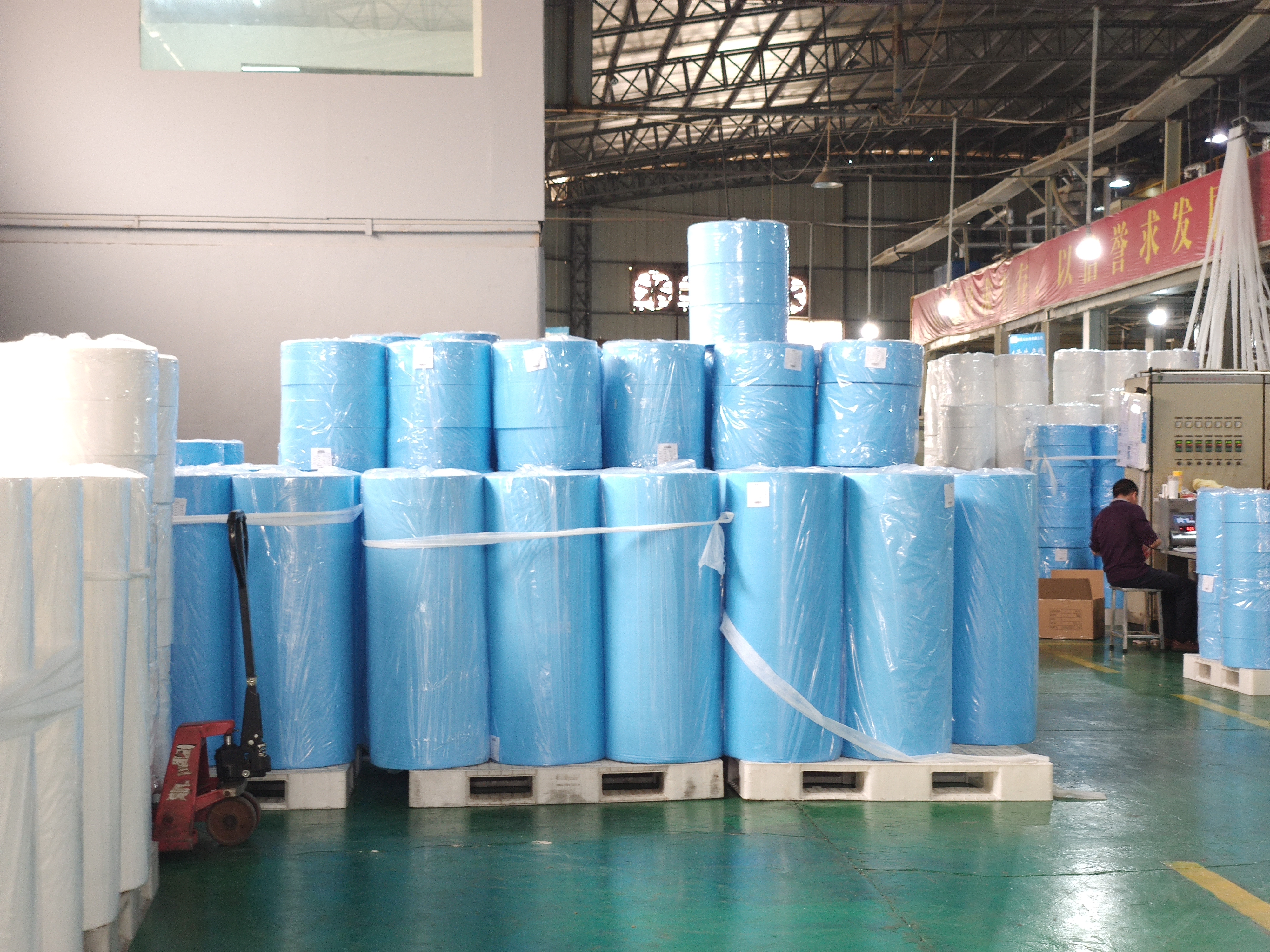 公司拥有8条先进的PP纺粘无纺布生产线,完善的产品检测设备和质量保证体系,已通过ISO9001:2015认证,年产量达30000吨,可生产克重9gsm至300gsm,幅宽3.3m以内的产品。可根据客户要求生产各种颜色和功能性PP纺粘无纺布。本产品广泛应用于农业、家具、家居、包装、保健一次性用品等诸多领域,国内外销售额各占50%,面向全球市场。